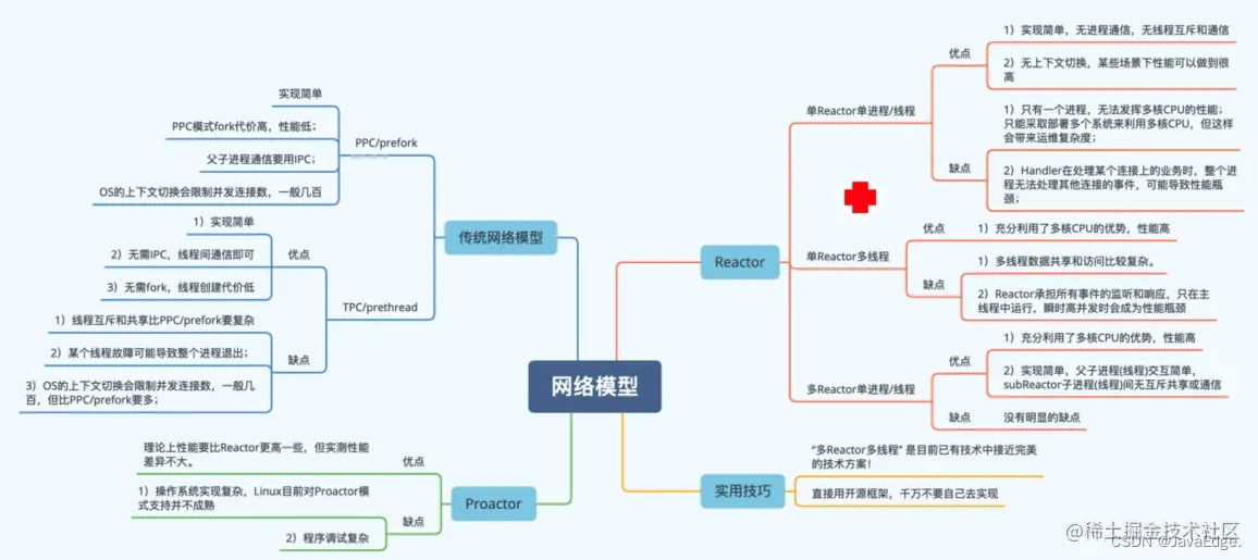 多Reactor多进程/线程模式也存在一些缺点。其中最大的问题是进程/线程间通信的开销较大,会影响系统的性能。同时,在多进程模式中,需要管理多个子进程的生命周期和资源分配,增加了系统的复杂性和维护成本。在多线程模式中,需要处理线程安全等问题,也会增加系统的复杂性。因此,在选择网络编程模式时,需要根据具体的场景和需求进行选择。