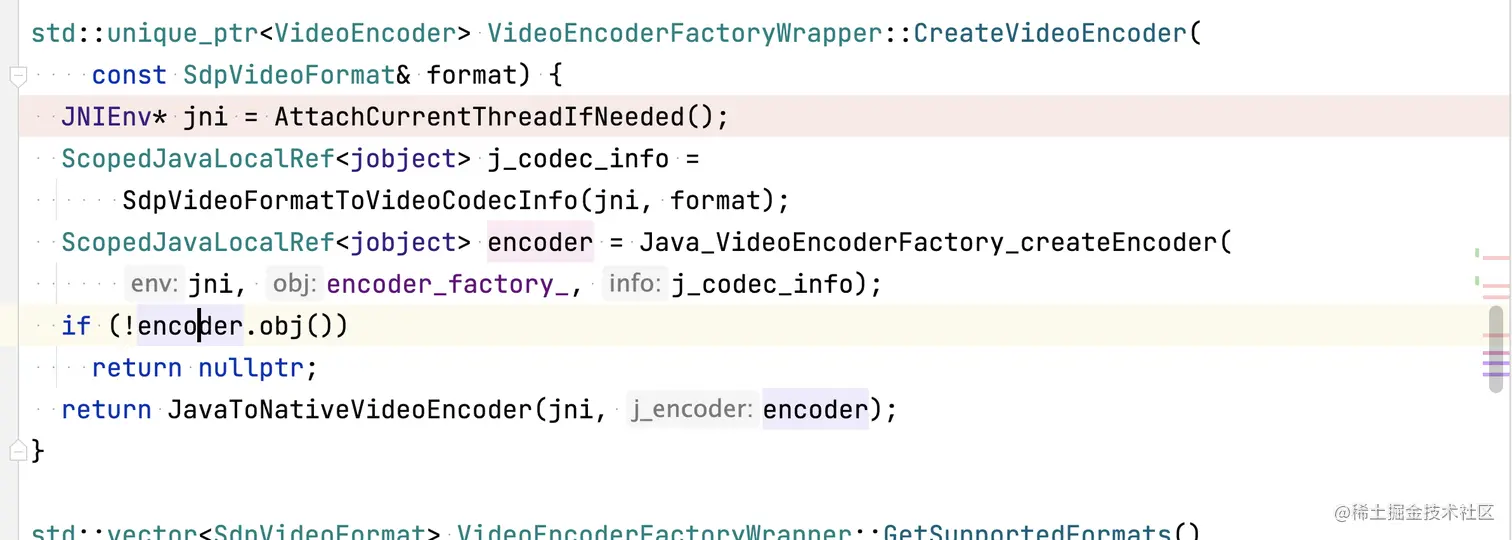 猜测既然在 Native 中包装了 java 端 VideoEncoder.java 的引用,那么肯定也有对应的 CreateEncoder 函数