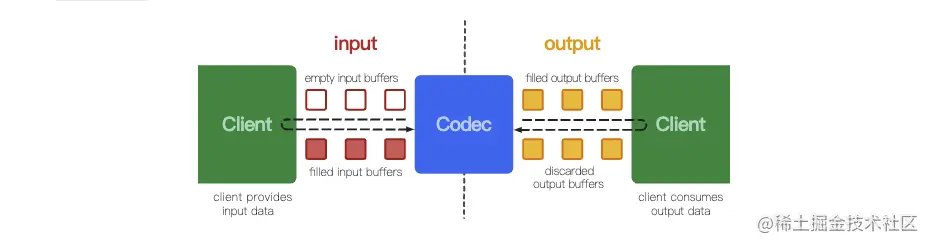 输入和输出缓冲区:MediaCodec 有两个缓冲区队列,一个用于输入,另一个用于输出。输入缓冲区用于接收原始数据(例如从摄像头捕获的视频帧),输出缓冲区用于存储编码后的数据。在编解码过程中,需要将这些缓冲区填充或消费。