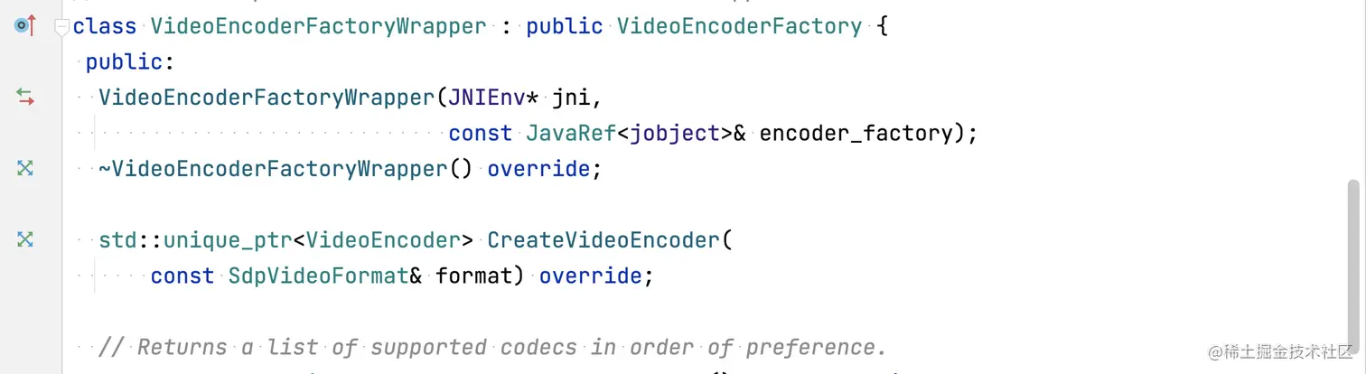 我们在 video_encoder_factory_wrapper.h 中看到了我们想要的函数,我们看下它的实现