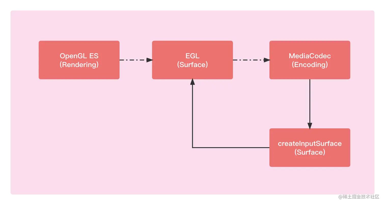 - 通过 Input Surface,将 OpenGL ES 绘制的图像传递给 MediaCodec。