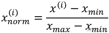 这里x(i)是具体的样本,xmin是特征列中的最小值,xmax是最大值。