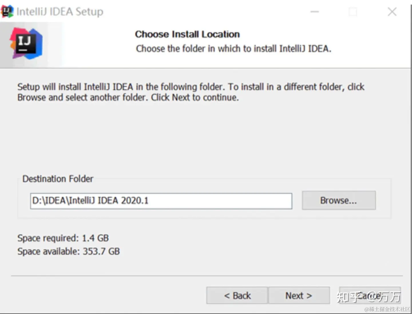 设置 IDEA 的安装目录,建议不要安装在系统盘(通常 C 盘是系统盘),这里选择安装到 D 盘,如图
