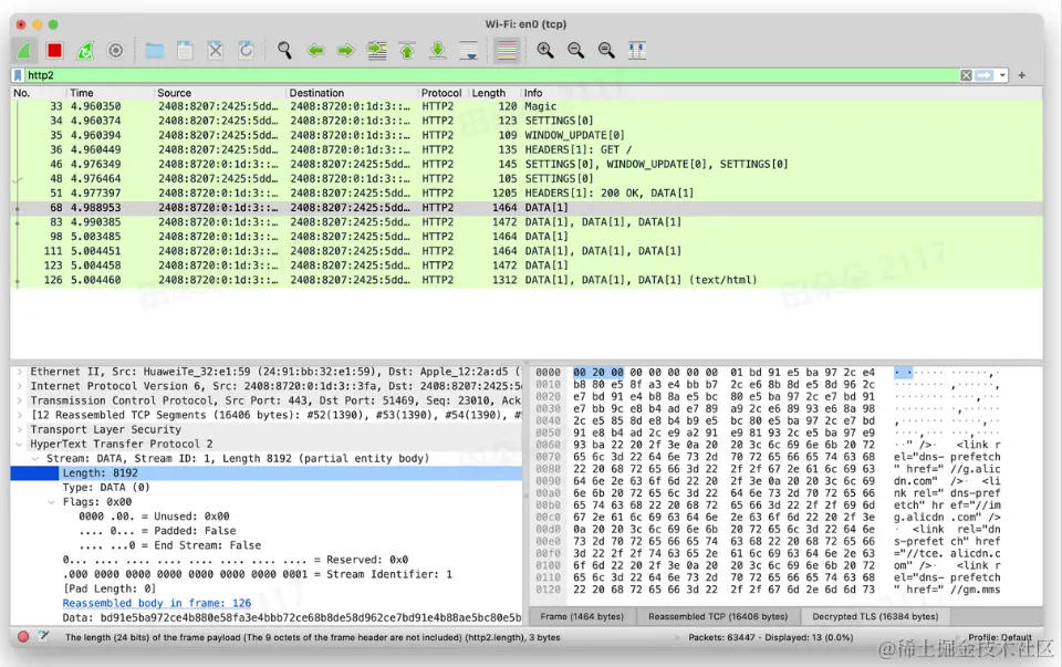 - TCP包3:包含了(包含了style.css的第三行内容)的HTTP2的帧