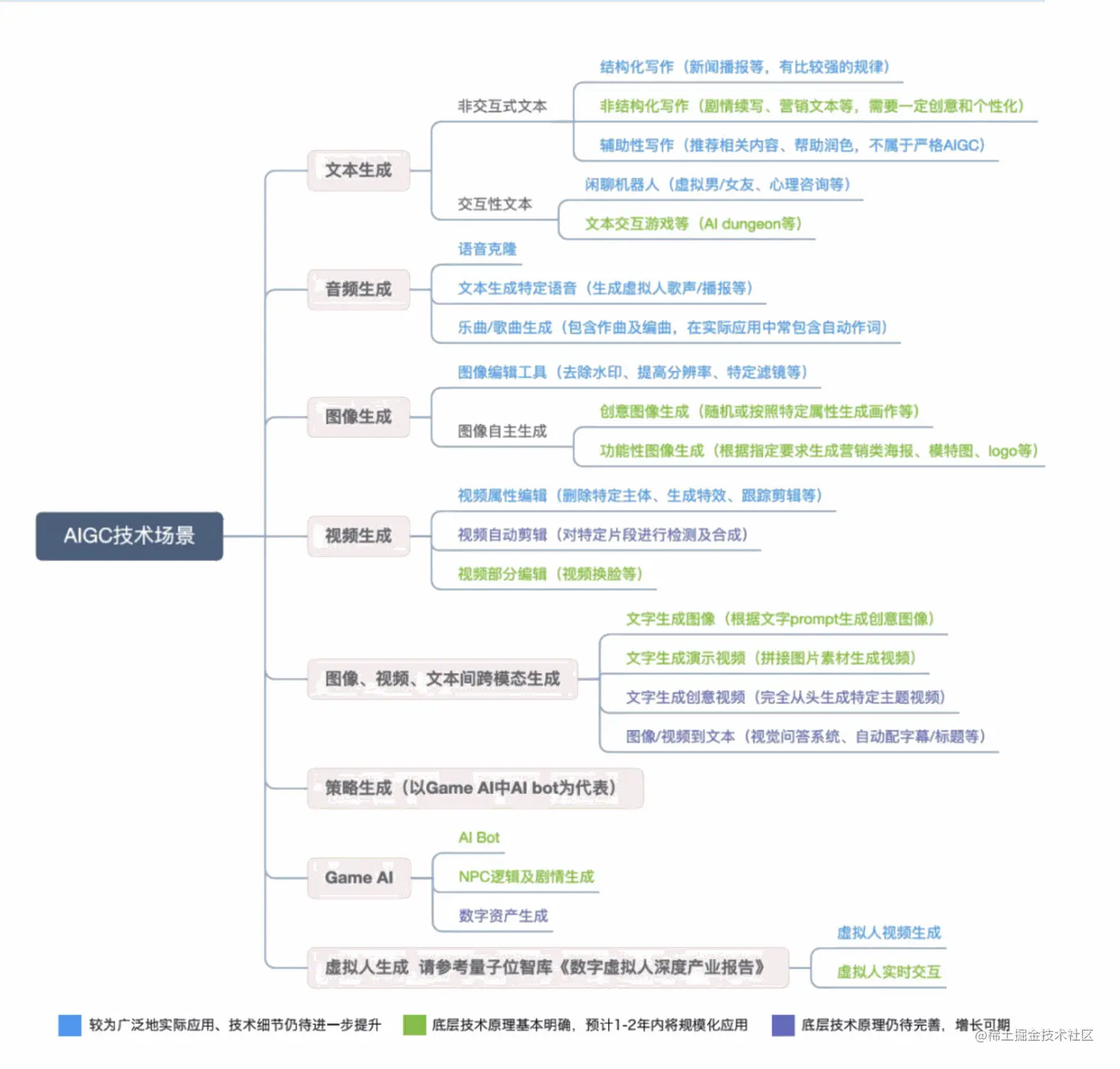 省流一句话理解:生成式AI是利用AI技术生成内容,此处生成和内容都是更为广泛的概念,生成的对象包括常见的图像、文本、音频等显性内容,还包括策略、剧情、训练数据等内在逻辑内容。