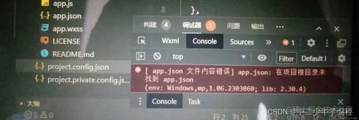 项目场景: 前段时间有粉丝私信,说自己的微信小程序在开发者工具中报错:“在项目根目录未找到app.json”,如图: