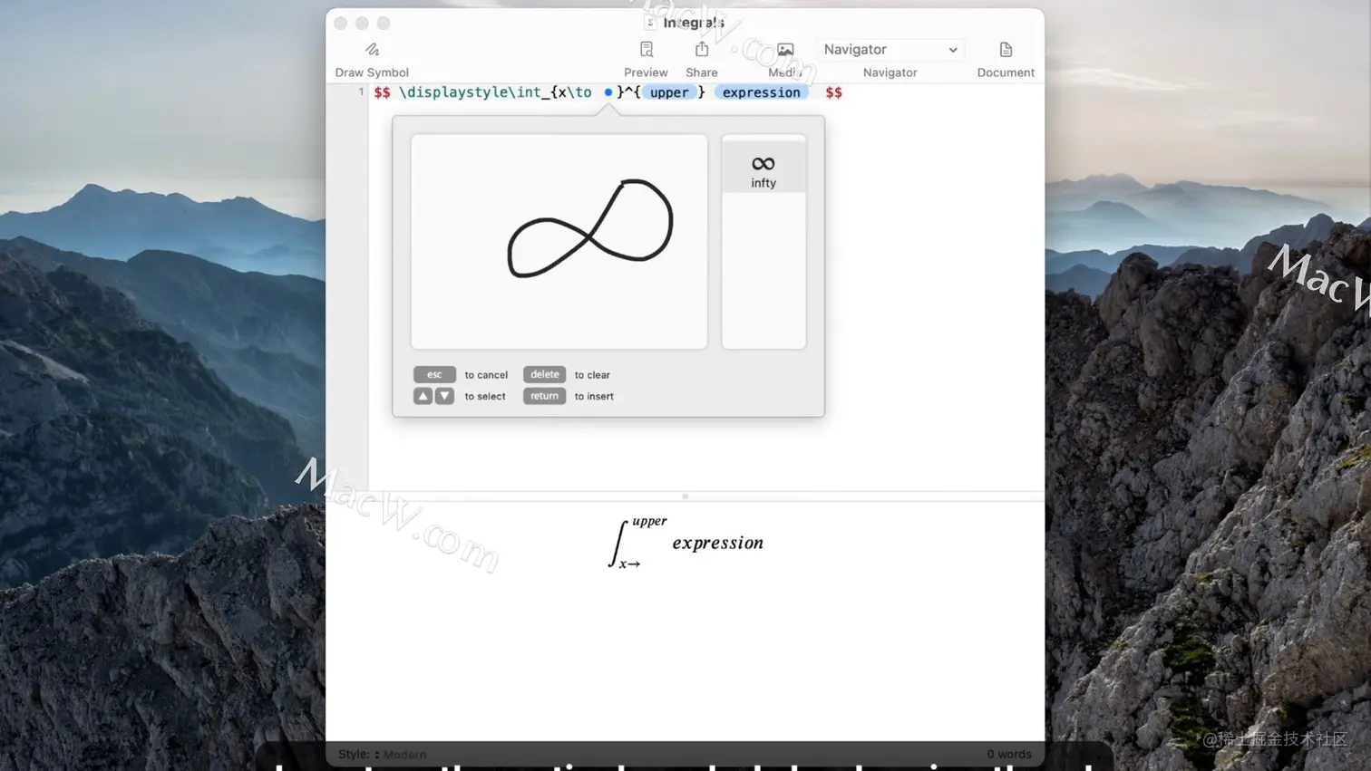 刚刚开始使用LaTeX语法?不知道渐近相等符号的代码?使用你的MacBook的触摸板或魔术触摸板来绘制它!阿基米德会识别这个符号并为你插入相应的代码。