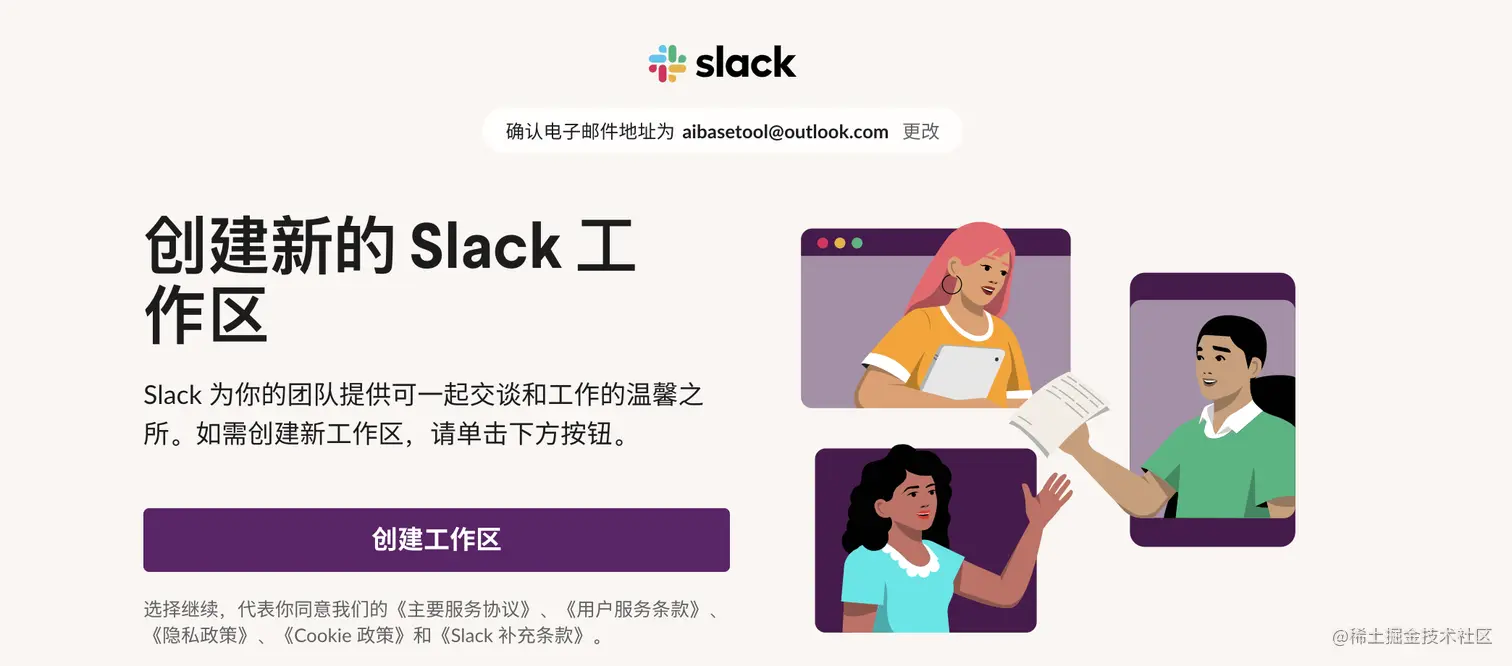 准备一个非国内公司邮箱账号,推荐微软邮箱(不受网络限制),就可以打开Slack网站创建工作区的工作区。slack.com/