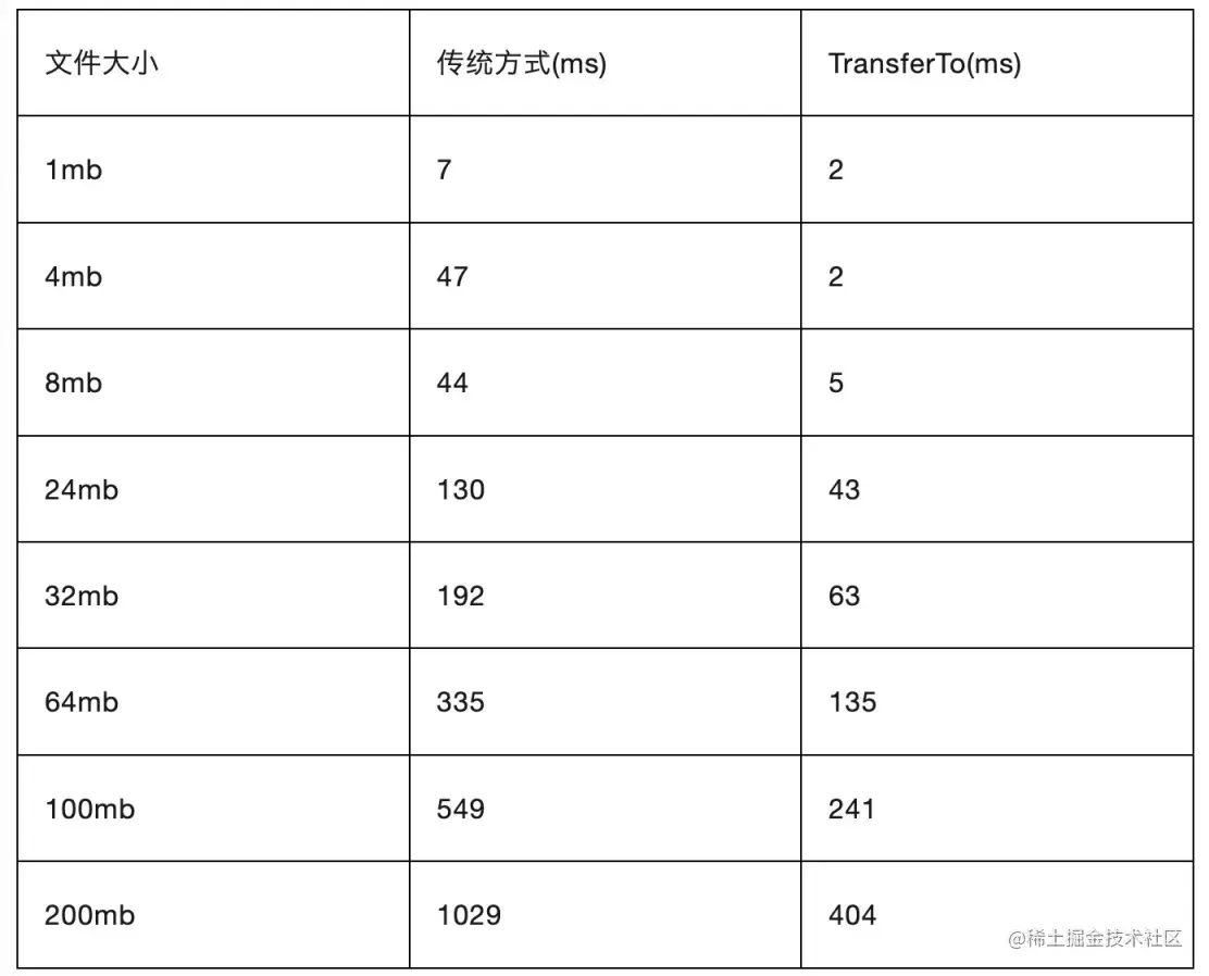 需要注意的是 transferTo()方法的方法签名并没有改变,只是操作系统的底层调用函数进行了调整优化。