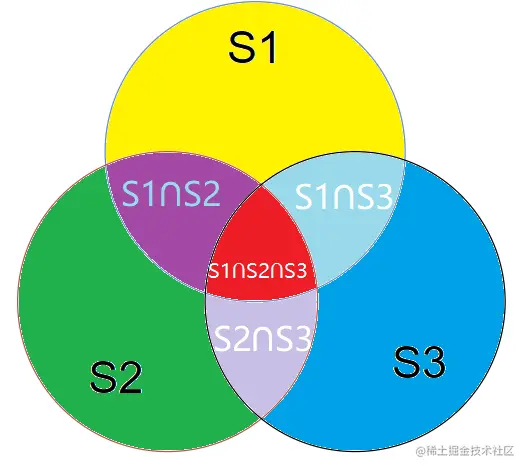 现在来考虑一下如何处理后面这个并集,并集往往是不好求的,而交集会好求很多,所以在求并集的时候我们往往采取容斥原理将一个并集转换成诸多交集的加减运算。