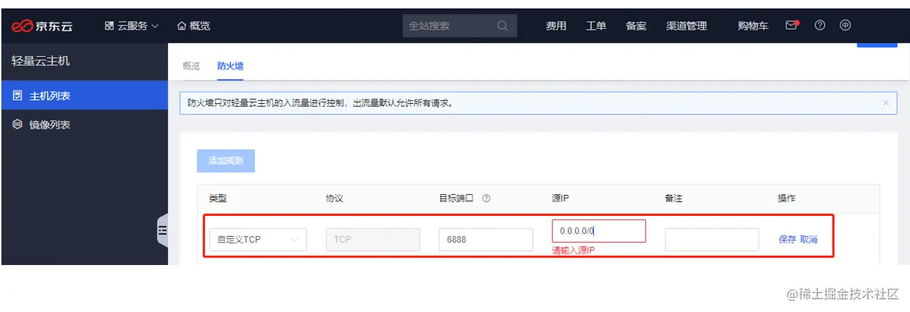(注意,配置设置的端口,需要在控制台的防火墙里配置对应的端口规则)