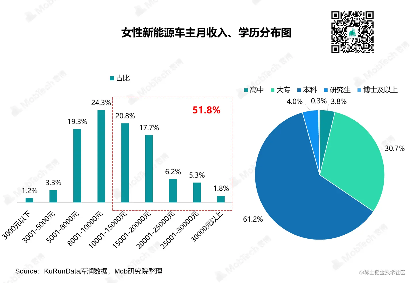 65%以上新能源女性车主的学历在本科及以上,并且有50%以上的新能源女性车主的收入突破万元。