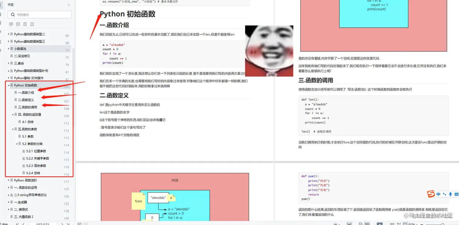 这份文档涵盖Python16个大知识点,73个基础知识必学点,共371页,条理十分清晰且简单易懂!每个函数均附有详细描述、语法参考、参数、返回值以及案例。 每有不懂的函数,语法,都可以在本文档内找到对应的函数解释和案例分析。这份文档绝对称得上是Python入门必备,是自学过程中不可多得的最佳学习资料。