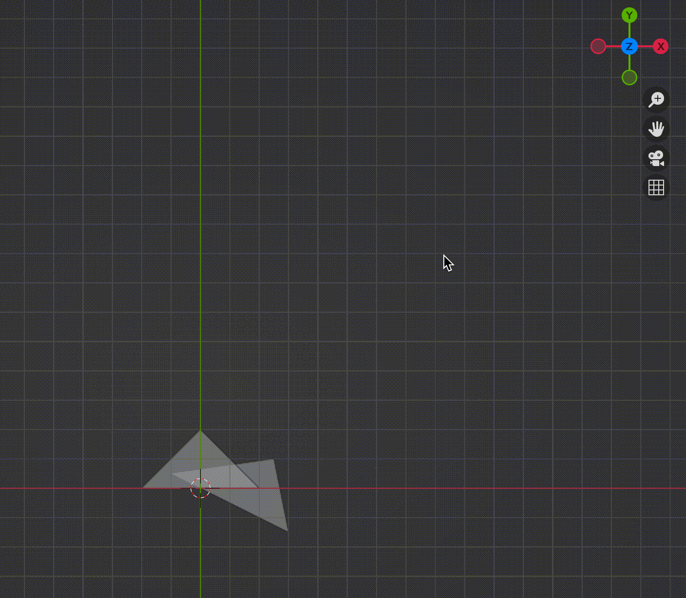 结合我们的模型,对两个三角形做透视投影(图5-1),可以看到两个三角形都在平截头体中,做透视投影后(乘透视矩阵)会先得到标准立方体,然后向[x, y]平面投影(暂时忽略z),得到具有近大远小效果的图(图5-2),图5-2动态比对正交投影和透视投影差别,可以很明显看到透视投影之后,z绝对值大的三角形会变小很多。