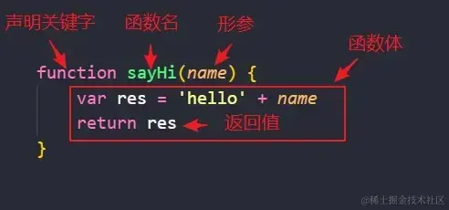 // function: 声明函数的关键字,表示接下来是一个函数了