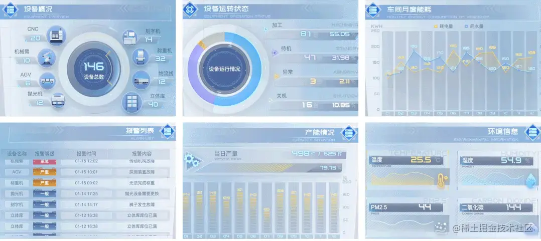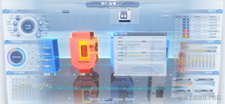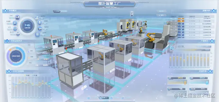 本文将依托图扑自研 HT for Web 产品,打造轻量化智慧工厂管理系统。借助传感器、物联网、大数据和云计算等先进技术,将工厂分布及各个生产过程的数据、信息、状态等实时呈现在可视化大屏幕上,实现对生产数据的实时监测和分析,让企业管理者对生产情况有更好的了解,从而提升生产效率和质量,降低生产成本和能源消耗,推动企业的可持续发展。