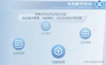 ②功能框架:明确支持业务实现的功能包括基本要素、功能模块、交互关系和作用范围。
