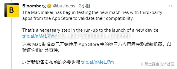 彭博社的马克・古尔曼(Mark Gurman)在最新博文中表示,在 App Store 开发者日志中发现了一款尚未发布的 15 英寸 MacBook Air,其处理器“相当于”M2 芯片。苹果可能会在今年 6 月召开的 WWDC 2023 上发布这款笔记本。