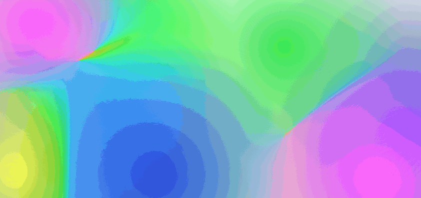 - 每个色块半径放大后,看起来就有了流体效果