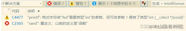 但是如果展开的是一个已经定义有的函数,会造成重定义。因为展开之后的 rand 就相当于一个没有被封装的全局变量,相当于定义了 int rand = 10,就会造成与库里的函数名字相冲突,就会造成重定义。