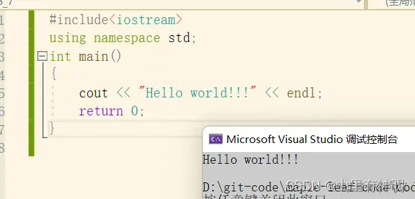 #include<iostream> using namespace std; int main() { cout << "Hello world!!!" << endl; return 0; }运行结果: