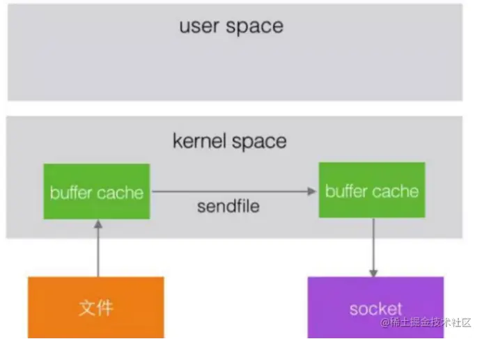 先简单了解下文件系统的操作流程,例如一个程序要把文件内容发送到网络,这个程序是工作在用户空间,文件和网络socket属于硬件资源,两者之间有一个内核空间在操作系统内部,整个过程为: