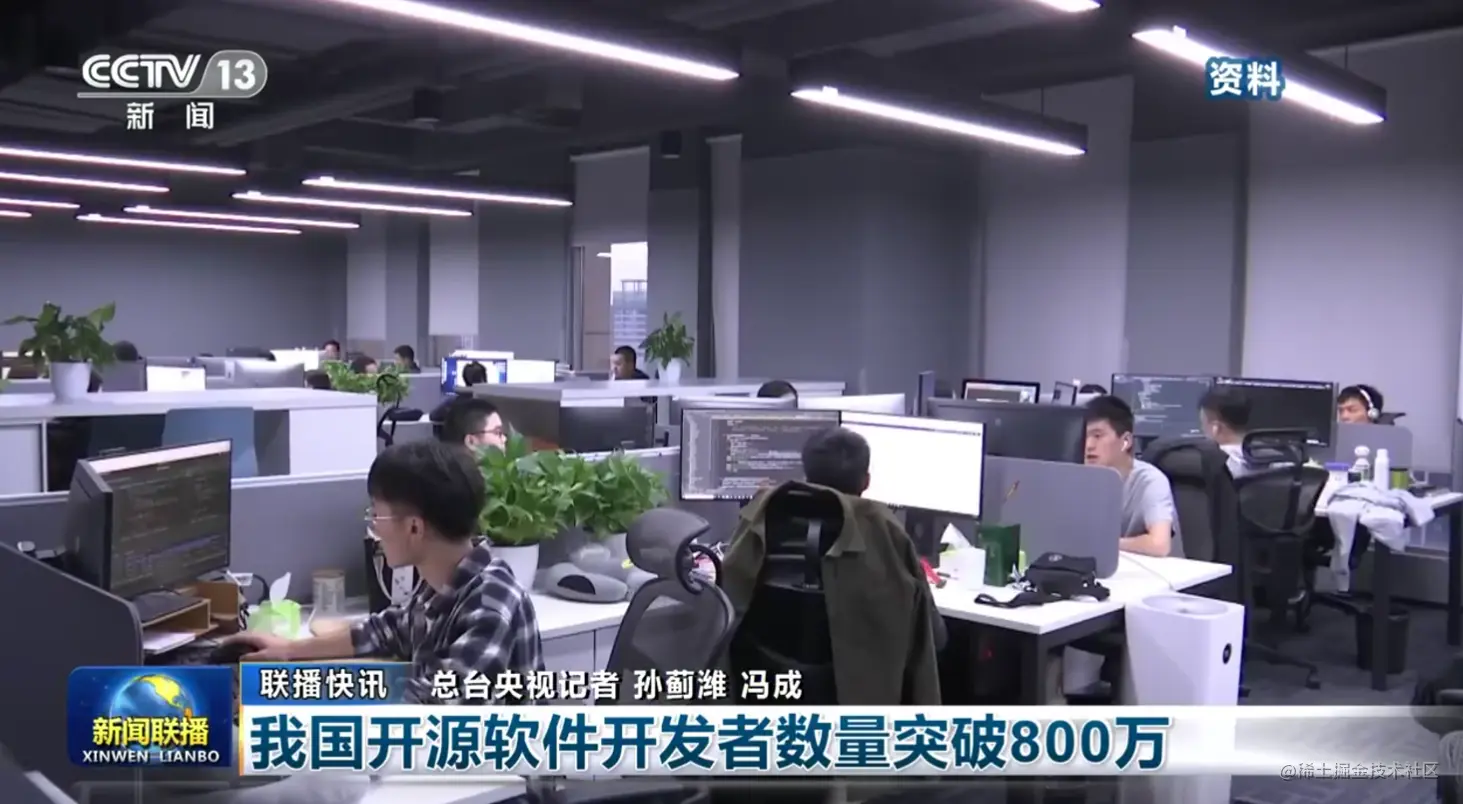 新闻联播:我国开源软件开发者数量突破 800 万 摸鱼号2023 2023-04-18 243 阅读1分钟 昨日,央视新闻联播报道称,根据记者从工信部了解到的消息,目前我国开源软件开发者数量突破 800 万,居全球第二。开源软件是一种通过分布式手段开发的软件,具有公开、可使用、可修改、可分发的特点。 视频地址:tv.cctv.com/2023/04/17/…