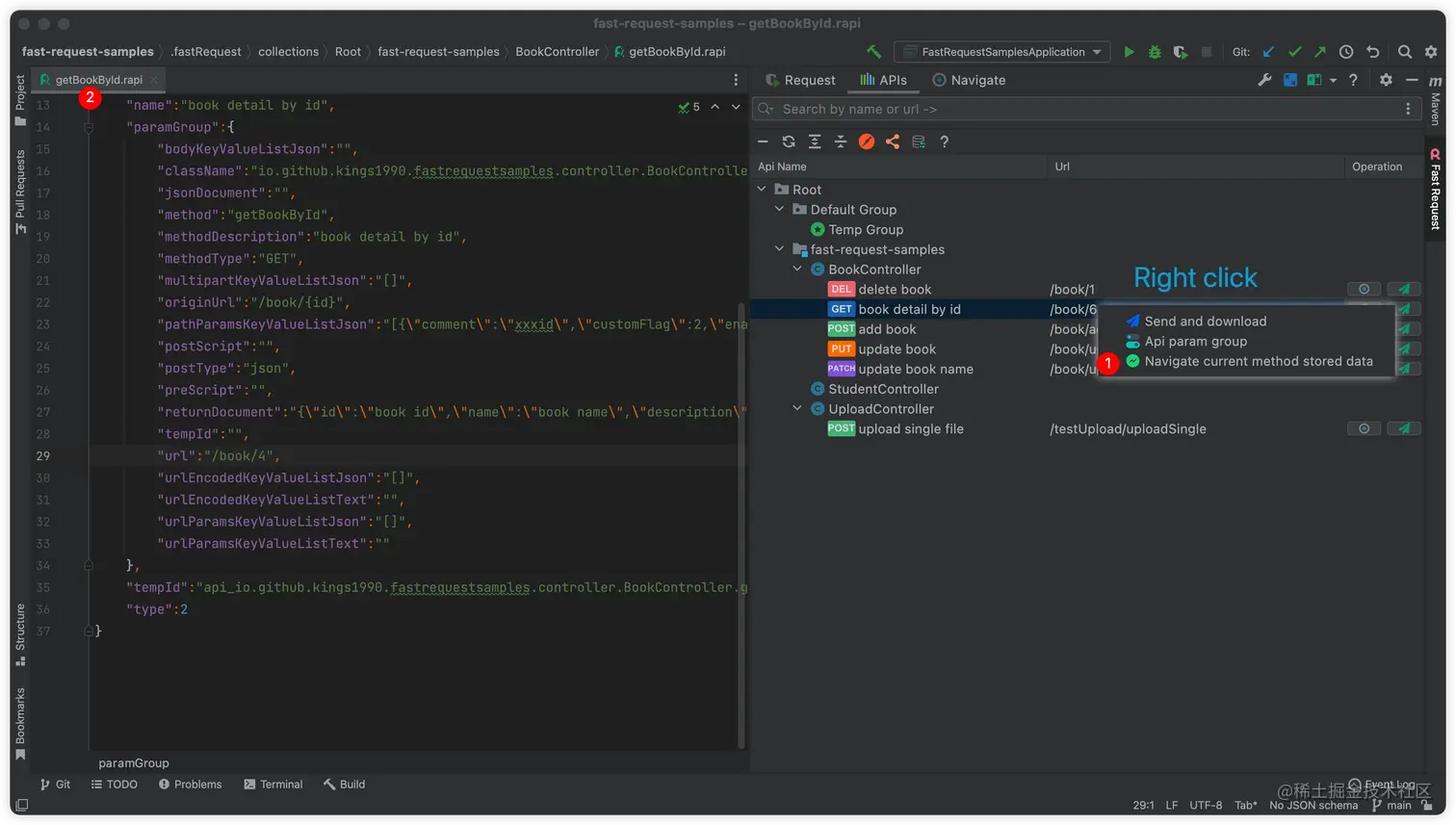 Restful Fast Request 是一个类似于 Postman 的 IDEA 插件。它是一个强大的 restful api 工具包插件,可以根据已有的方法帮助您快速、自动生成 url 和 params。 Restful Fast Request = API 调试工具 + API 管理工具 + API 搜索工具。 它有一个漂亮的界面来完成请求、检查服务器响应、存储你的 api 请求和导出 api 请求。插件帮助你在 IDEA 界面内更快更高效得调试你的 API。