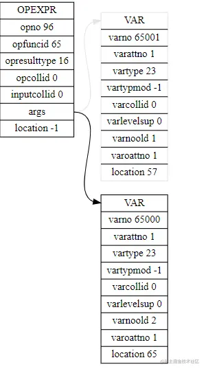 从 OpExpr 可以看出,ExprState 本身也是一棵树。一直递归调用 ExecEvalExpr 来获取最终的结果。