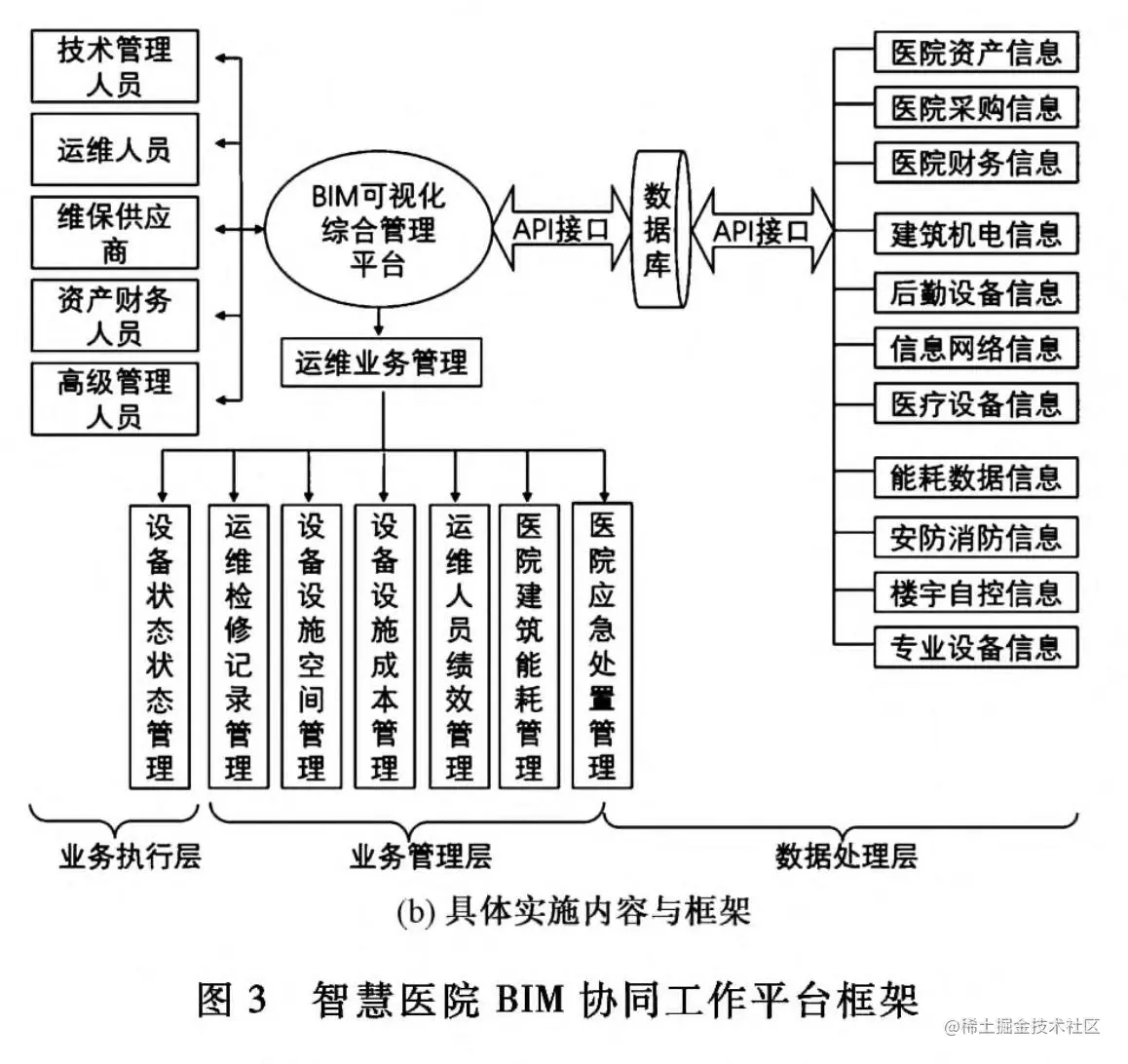 基于BIM协同工作平台的智慧医疗已是大势所趋。可充分发挥BIM轻协同、易管理优势,下图体现了IBM辅助医院的数据管理,业务管理和业务执行管理的全方位记录,显示和管理框架,有助于数据统一,管理集中,决策透明。