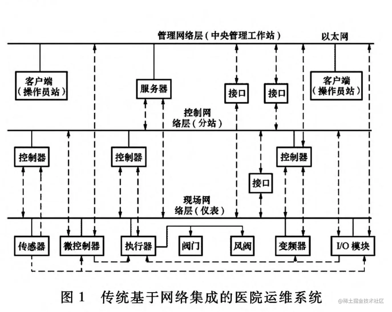 传统医院运维系统的智能化程度多依赖于现场设备的集成化工程设计,且多基于现场总线、蓝牙、以太网等多种网络形式,即智能化升级改造多体现在网络通讯方面技术的应用,存在的突出的问题包括: