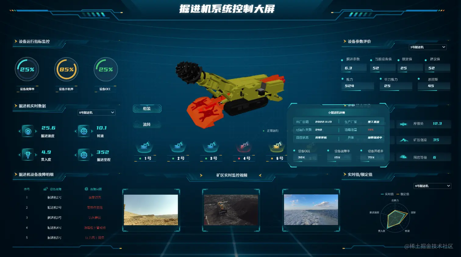 掘进机系统控制大屏