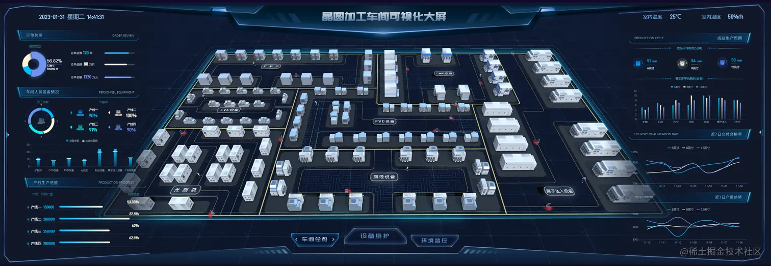 同时,工程制造业、制造业的3D可视化应用也在蓬勃发展中,私我可获取上述demo模板,一起探索更多3D大屏应用场景吧!