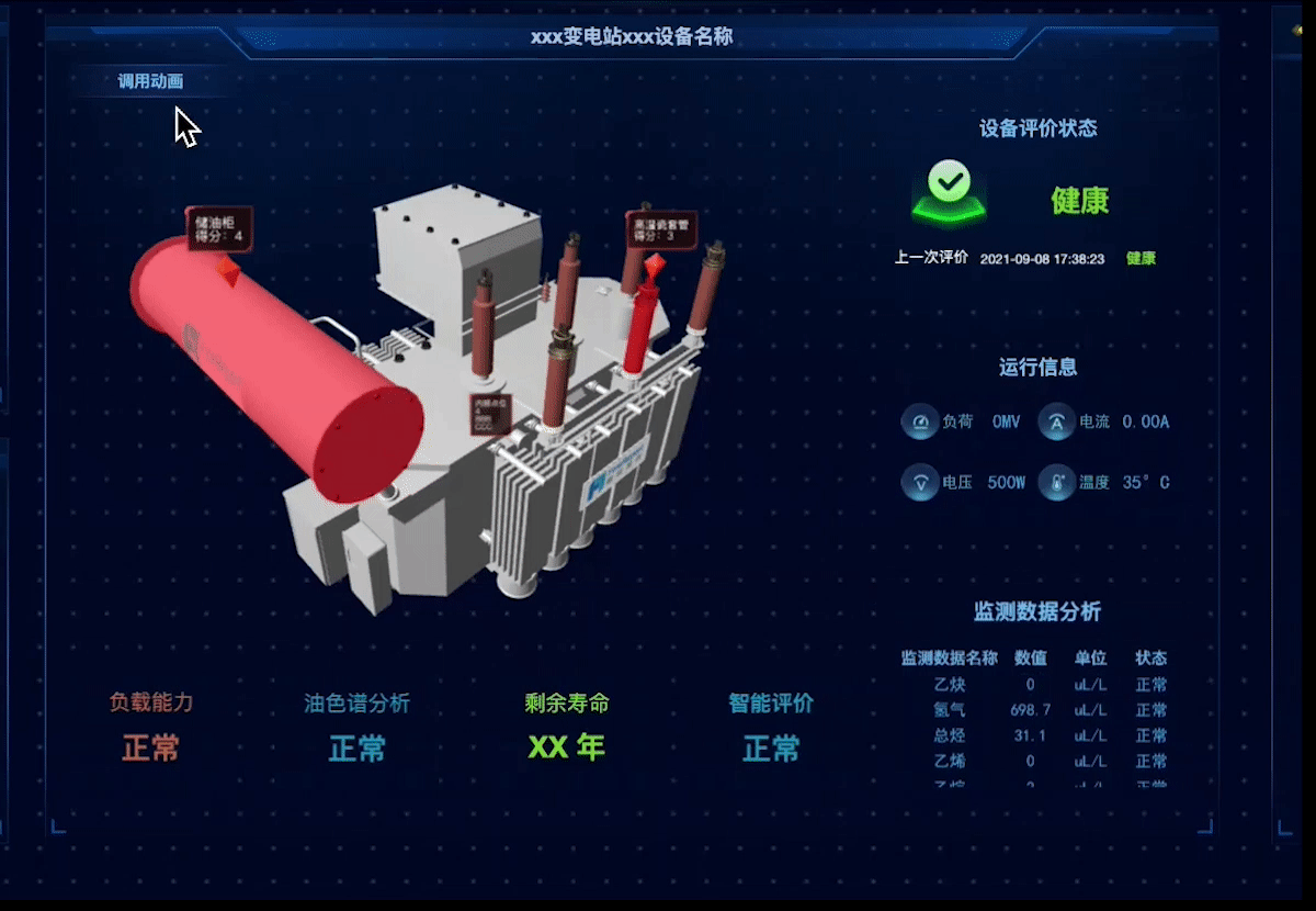 溶蚀透视的特效除了效果酷炫,更能体现了三维可视化的业务价值,例如设备检修类场景中,透视设备外壳查看内部监测点位,就会用到这一功能。
