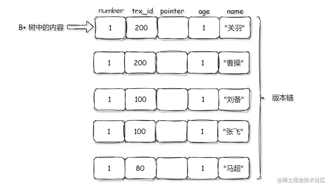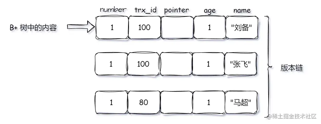 此时版本链为:
