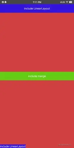 <merge />标签和非<merge />标签的区别 <include />标签设置了width/height和其他位置相关的属性会使用外面设置的属性覆盖子View的属性,include_1没有设置属性所以使用的是include_test_viewgroup的属性,include_2设置了位置相关属性所以使用了设置的属性,从实际显示效果能看得出来。- 关于theme的覆盖,如果子View设置了theme,会使用子View设置的theme替换context(父布局RelativeLayout)的theme,根据