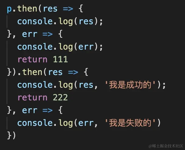 在这一节遇到一个问题,为什么错误回调返回的值,会被下个.then方法的成功回调处理?