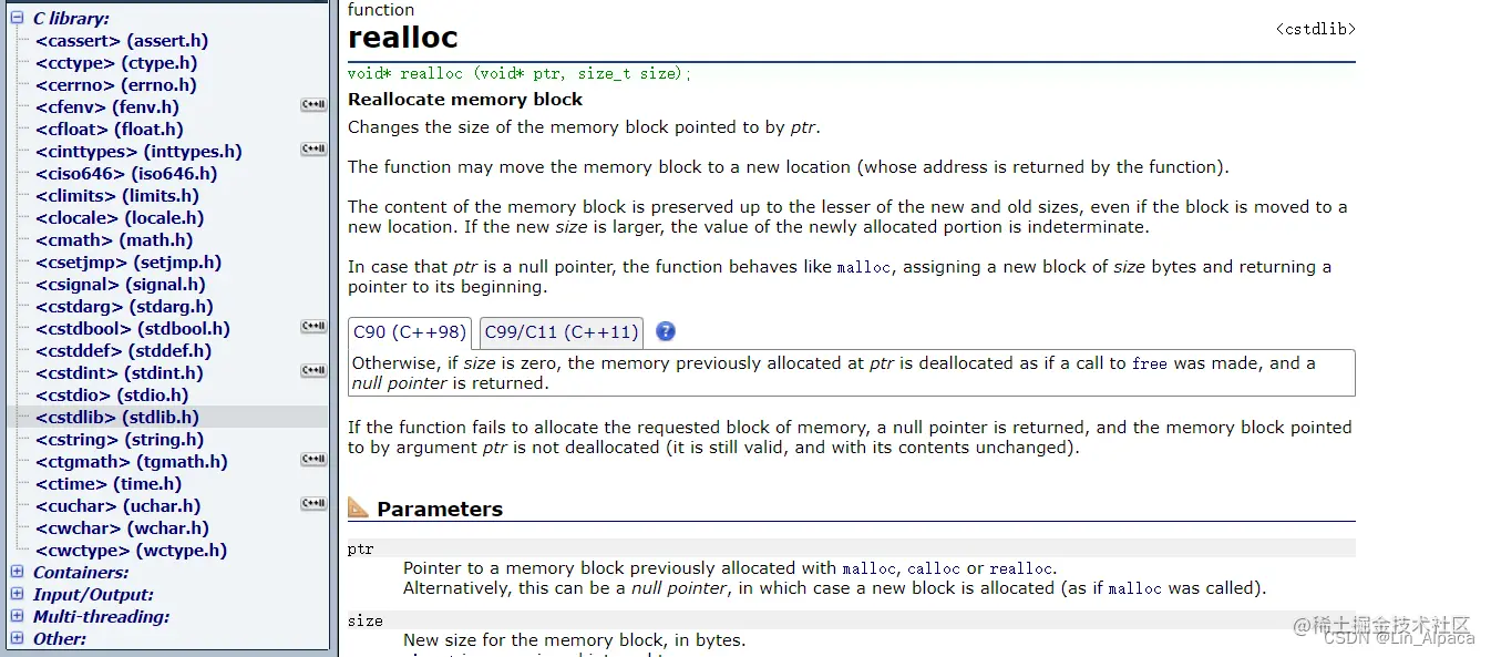 这个函数跟 malloc 相似一样是在内存之中开辟动态内存,与之不同的是 calloc 所要传的参数比 malloc 多一个,即开辟 num 个 size 大小的空间供程序员使用,同时,若开辟成功则返回开辟空间的 void* 类型的首地址,否则返回空指针,因此也需要对其返回值进行检查。