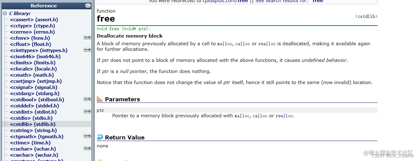 free函数接收一个指针,将其释放并没有返回值。值得一提的是所传输的地址必须是申请空间的首地址,这样才能正常运行,因此建议不对原指针进行直接运算,而是用间接的方法来访问整个空间。同时,一个 malloc 或 calloc 对应一个 free ,保证不使用就释放。