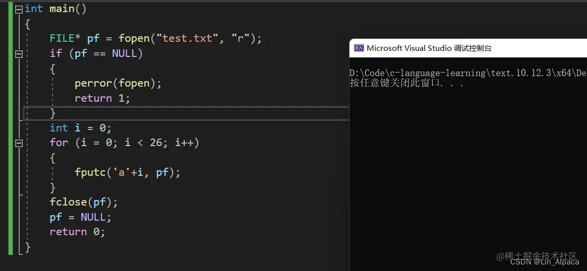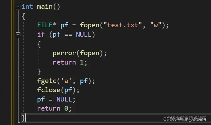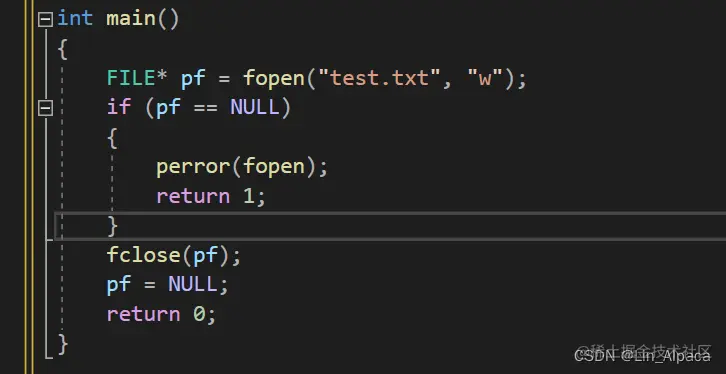 具体打开方式的区别我们留着后面讲。但是值得注意的一件事是用含 r 或 ab 打开方式如果查询不到指定文件则会返回一个空指针。为了避免出现错误,我们必须对 fopen 的返回值进行检查,如果正常才能让函数继续进行。