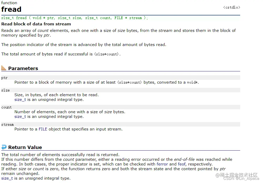 这就是我们从文件中读取二进制时所要用到的函数,内含的参数与 fwrite 类似。