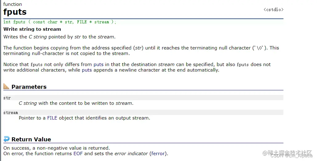 fputs为文本行输入的函数,输入一个字符串并将其写入文件中。