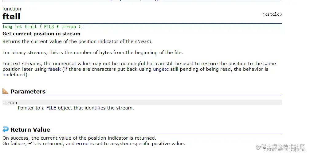 ftell 会用返回值告诉你文件指针相当于起始位置的偏移量。若失败,将返回-1L。