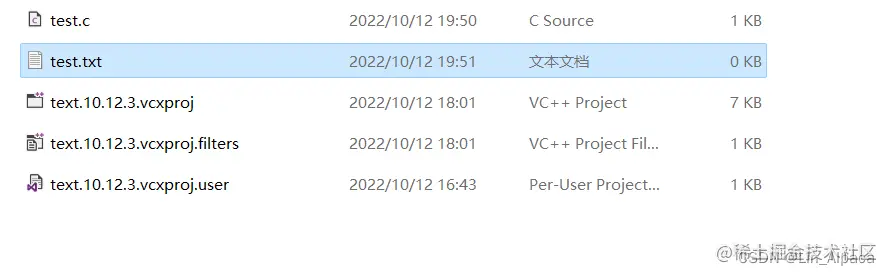 将程序运行之后,由于没有这个文件所以在当下文件夹自动建立了一个叫 test 的文本文件。