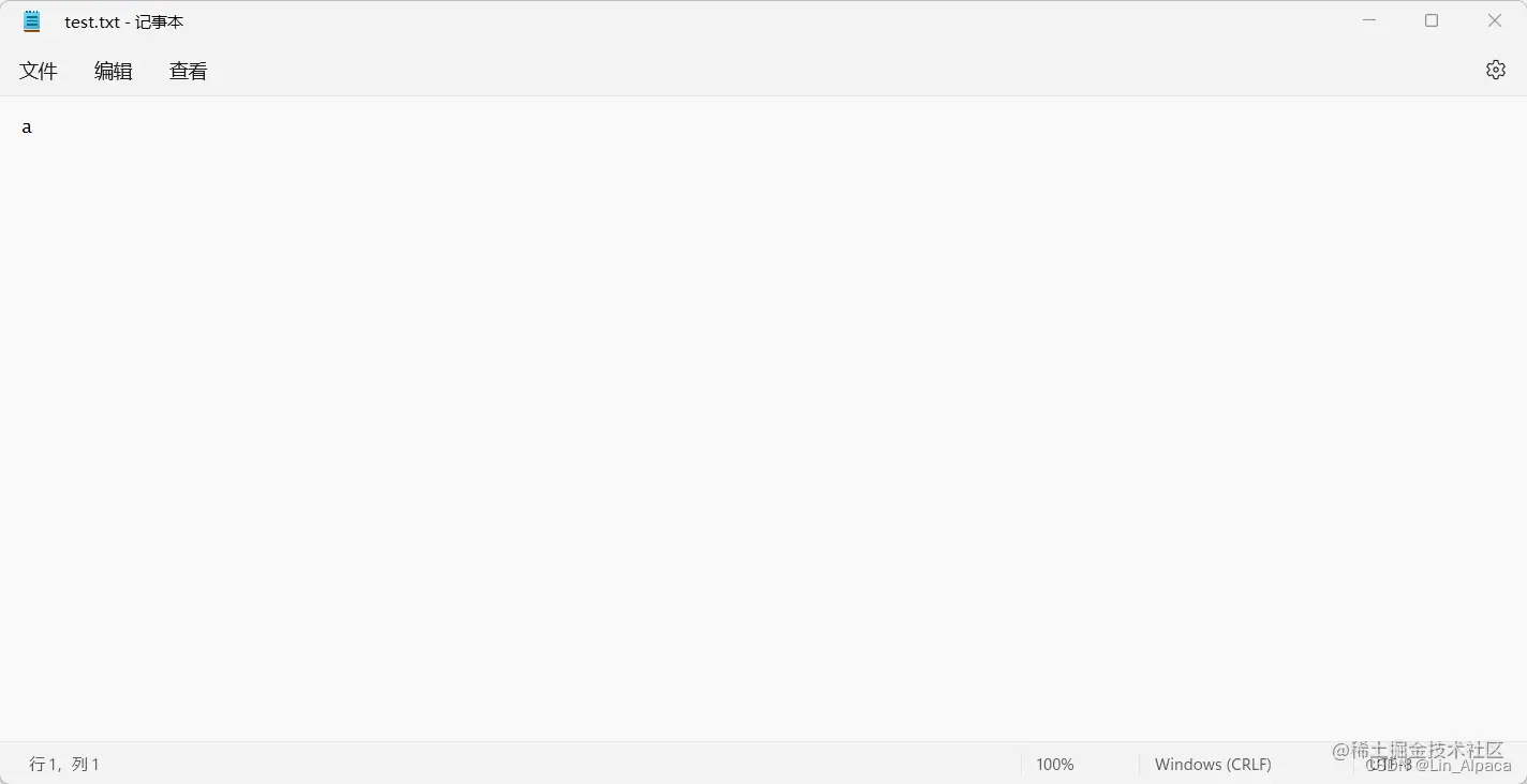 打开这个文件后我们可以发现里面写入的就是 a 。说明我们的代码并没有出错,这个库函数确实能够将我们想要的数据输入到文件之中。