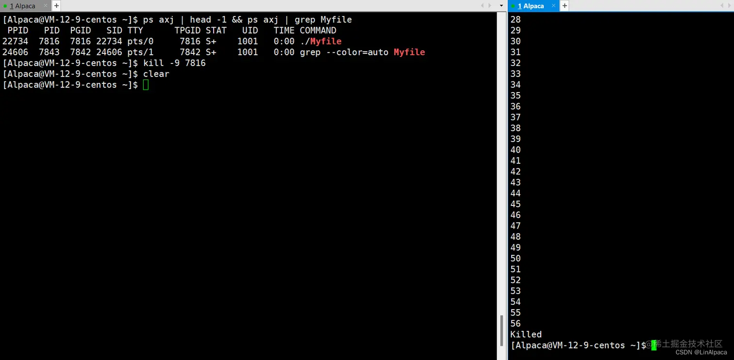 🥖当这串命令执行之后,你会发现出现了两个进程。 这是由于,当我们查找进程时使用的命令也会在操作系统的处理下变成一个进程,同时也包含了进程名的关键字,所以在输出的时候才出现了两个进程。但第一个才是我们程序运行所产生的进程。