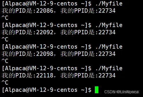 🥖之后我们反复地运行和结束程序,我们可以看到程序的 PID 是一直在改变的,而其 PPID 始终没有发生改变。当我们顺着这个 PPID 找回去时,我们发现这个进程的名字叫做 bash 。