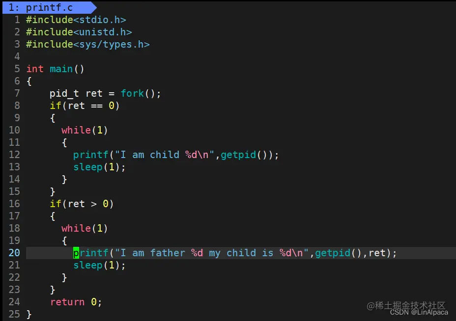 🥖为了让父子进程执行不同的代码块,我们可以用 if else 将父子进程分开从而进行不同的工作。