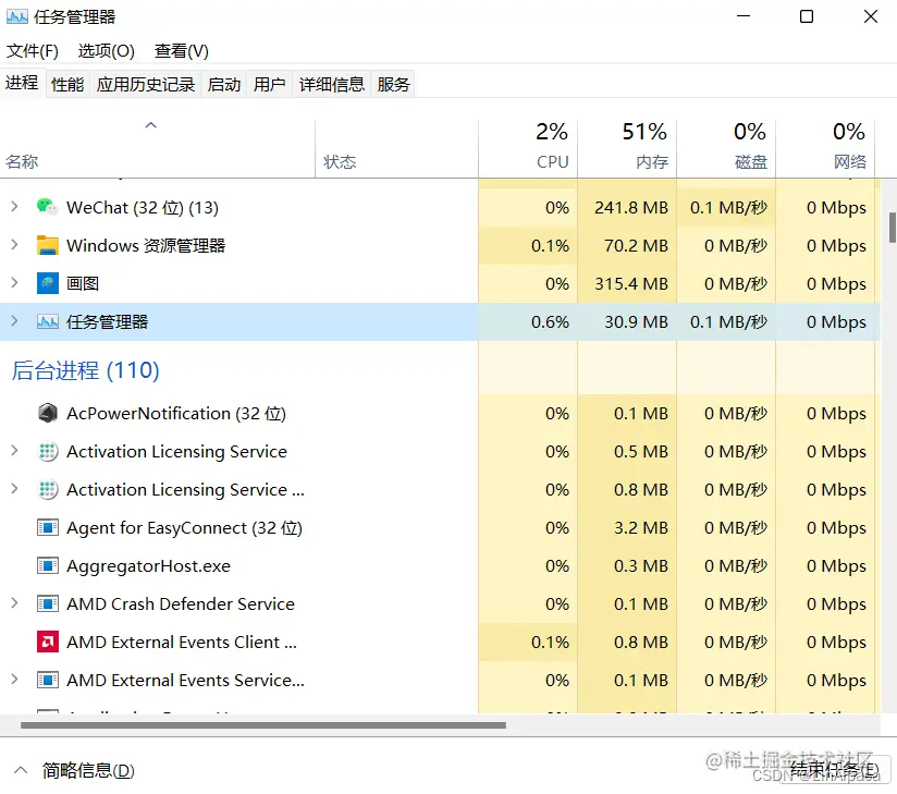 我们打开任务管理器便会发现这些正在运行的可执行文件都是一个个进程。