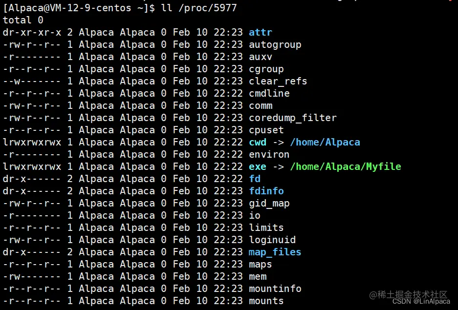 🥖第二种方法则是直接在系统文件夹之下查找,我们事先得到进程的 PID 之后,在 proc 文件夹下找到目标进程的目录,便可以看到该进程的具体属性。